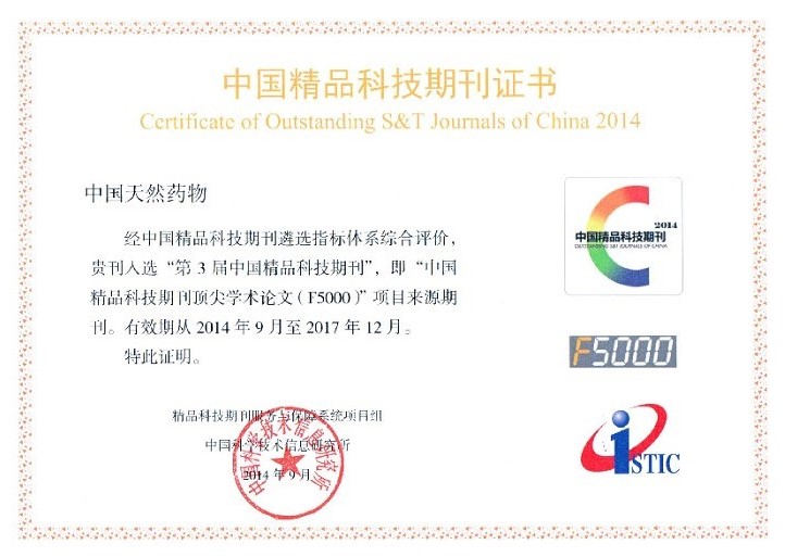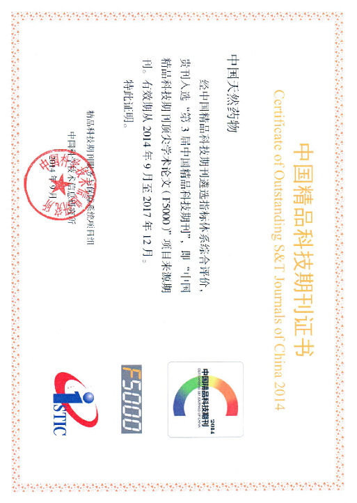 领跑者5000(简称F5000),是中国科学技术信息研究所自2000年开始立项开发的国家级研究课题,旨在将中国精品体育买球入口_人生就是搏,期刊上发表的部分优秀论文推向国内外高端平台,在更大范围内向世界展示和推广我国最重要的科研成果,以扩大期刊和作者的学术影响力,引领我国高水平体育买球入口_人生就是搏,期刊事业的发展和成长。自2012年度F5000项目启动以来,《中国天然药物》已有多篇论文入围。