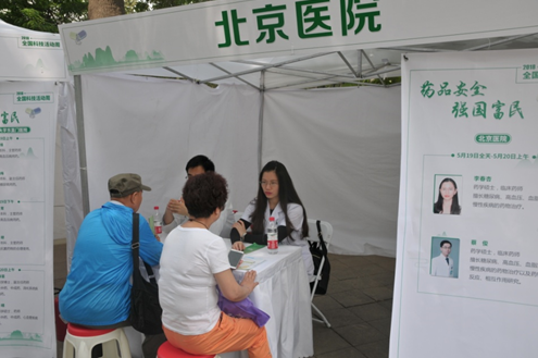 来自北京协和医院、北京医院、北京中医药大学东直门医院、首都医科大学附属 宣武医院、首都医科大学附属北京朝阳医院、首都医科大学附属北京同仁医院、首都医科大学附属北京安贞医院、首都医科大学附属北京儿童医院、首都医科大学附属北京妇产医院、北京市垂杨柳医院等10家医疗机构的药学专家、药师和药学科普志愿者,以展览展示、发放科普折页、义诊咨询等形式向公众普及健康知识,吸引了大批公众驻足询问合理用药相关问题。