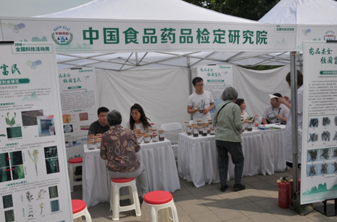 中国食品药品检定研究院中药民族药检定所(简称中检院中药所)专家进行了为期一天半的中药科普知识宣传活动。中检院中药所作为国家中药质量分析检验、技术仲裁的最高技术机构,组织中药专家为公众讲解中药材真假辨别、中药材染色、中药材中农药残留情况以及中成药的真伪查询等公众关心的重点问题。同时,中检院中药所展列的50批药材标本,都是公众关心的品种,如三七、川贝母、西红花以及冬虫夏草和金银花正伪品等,对于引导公众学习药品安全知识、掌握安全实用中药鉴别技能提供了实物展示。