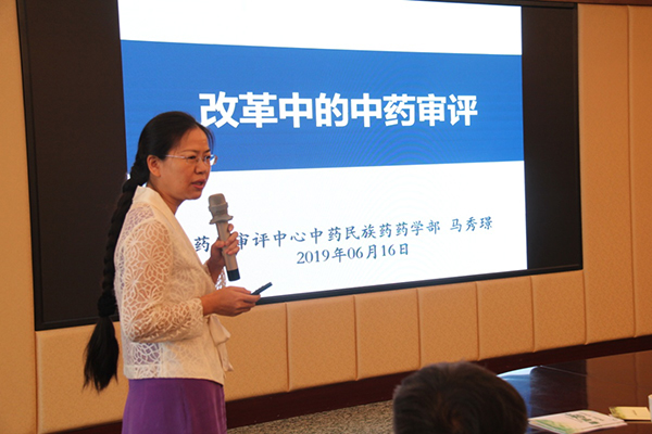 国家药品监督管理局药品审评中心高级审评员马秀璟做“改革中的中药审评”报告